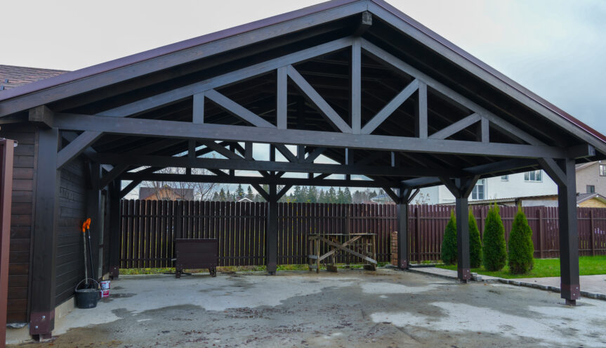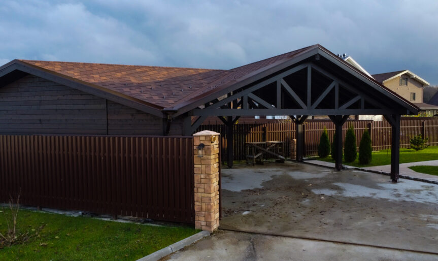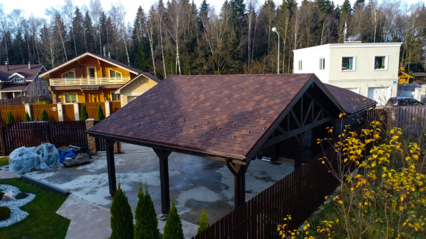 - Стойки (столбы навеса): клееный брус 200х200 мм